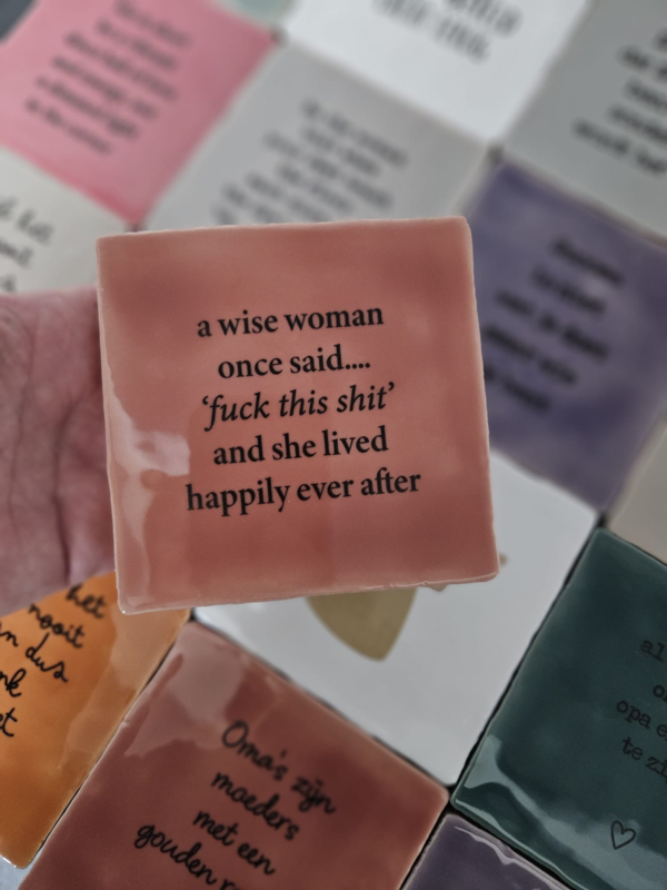 - Tegeltje met de tekst:a wise woman once said...fuck this shit... and she lived happily ever after