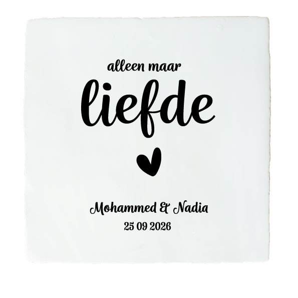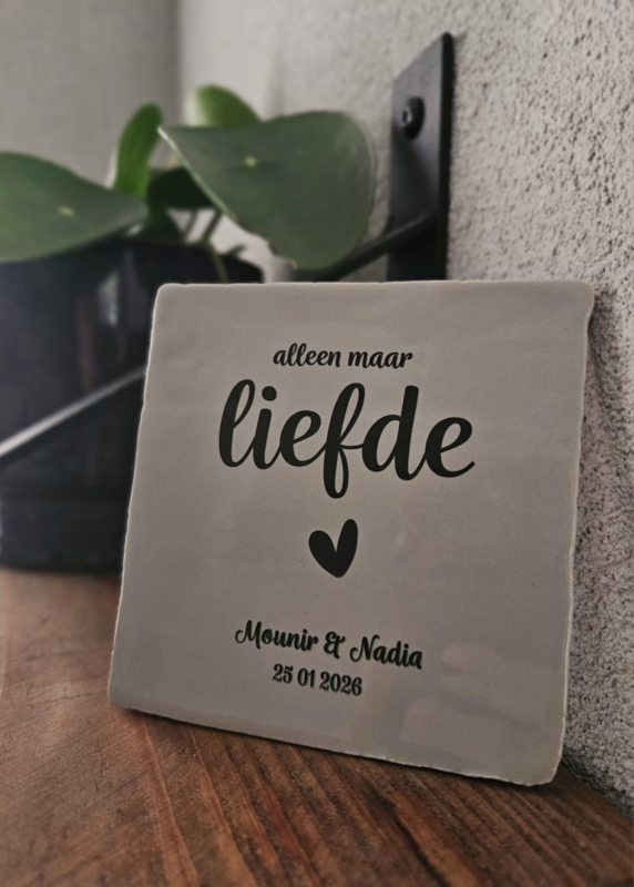 - Tegeltje met tekst alleen maar liefde, hart, naam / namen en datum