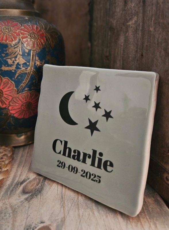 Gepersonaliseerd geboorte tegeltje met maan en sterren