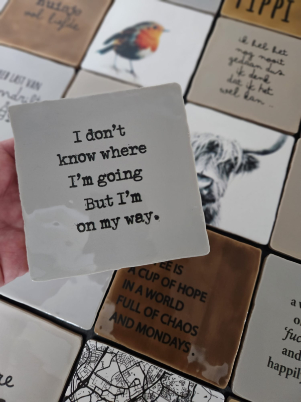- Tegeltje met de tekst: I don't know where I'm going but I'm on my way