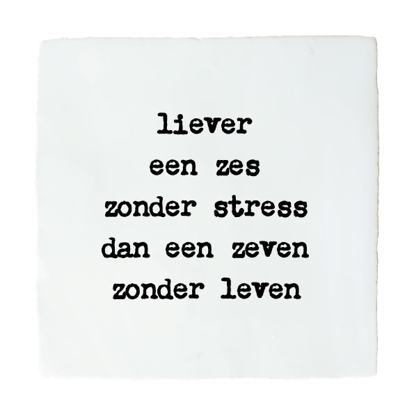 Tegeltje met de tekst: Liever een zes zonder stress, dan een zeven zonder leven