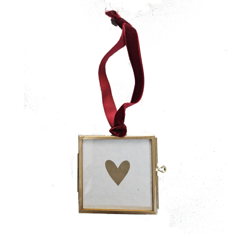 MESSING HANGER 6 x 6 MET GLITTER HARTJE OF KLAVER 4MeSSING HANGER 6x6 MET gLITTER HARTJE OF KLAVER 4